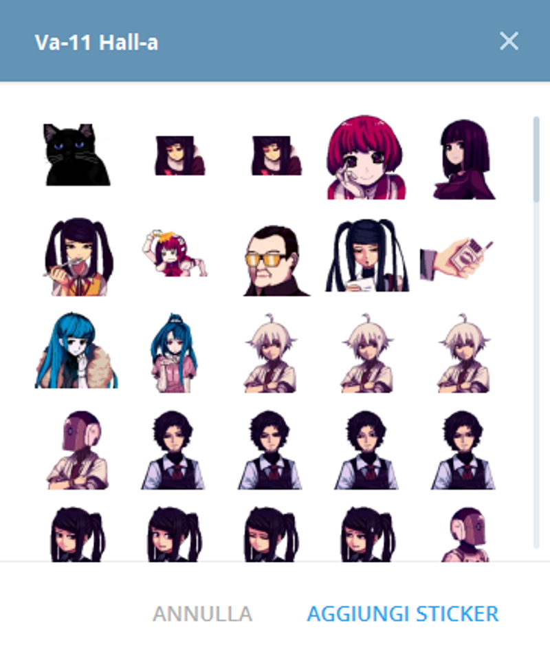 Anche VA-11 HALL-A ha i suoi sticker Telegram ora 0 By Free Playing on 27/08/2016 News Facebook Commenta su Facebook