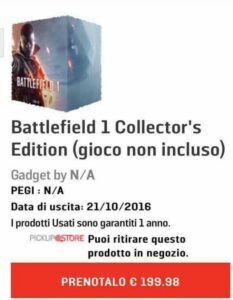 News 08/05/2016 …e poi la collector’s edition di Battlefield 1 in preorder alla modica cifra di 200 euri…